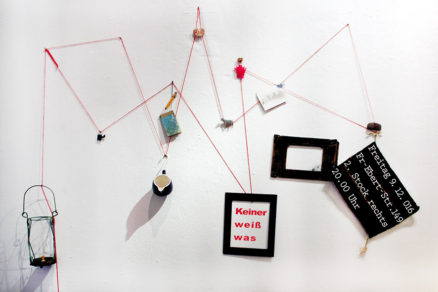 Gefragt von den Menschen wann denn dieses Jahr unsere Ausstellung statt findet, stellte ich fest, dass ich gar nichts Neues zu zeigen habe. Schon lange bin ich nicht damit einverstanden, dass immer alles in der Kunst brandnew sein muss und ich habe auch keine Lust mich in diesem Bereich unter Druck zu setzen. Da ich die künstlerische Arbeit als immerwährenden Prozess erlebe, der sich nur wenn es sein muss in wahrnehmbaren Dingen manifestiert, nehme ich die Anfragen zum Anlass diesen Prozess zum wahrnehmbaren Event zu machen. Die Einladung und der Titel sind die ersten Schritte da hin. Was ich jetzt schon einigermaßen sicher weiß ist, dass wir warme Räume haben werden, ein Innenklo und viel Platz. Eine große Suppe werde ich wie immer für Euch kochen und vielleicht werde ich den Flur zu einem großen Lager umbauen mit Kissen und Decken. Kissen sind zur Zeit meine Leidenschaft und Liegen sowieso. Wer kalte Füße haben sollte - wahrscheinlich müsst Ihr nämlich alle Eure Schuhe vor der Türe ausziehen - bekommt gestrickte Socken von meiner lieben Schwester Liese. Davon haben wir so schön viele.